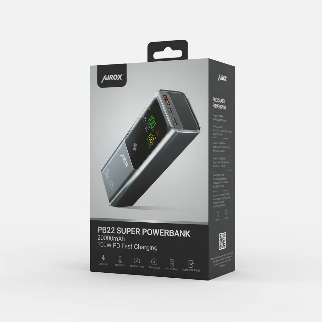 Stay powered up with our Airox PB22 Super Powerbank, featuring a massive 20000mAh capacity and lightning-fast 100W PD (Power Delivery) charging. Designed for ultimate convenience and performance, this power bank is perfect for professionals, gamers, and travelers who need reliable, high-speed charging on the go.Key Features:Massive 20000mAh Capacity: Charge your smartphones multiple times (e.g., iPhone 15 up to 4-5 times), tablets, and even power a laptop for hours. Never worry about running out of battery during long commutes or trips.100W Power Delivery (PD) Output: Experience ultra-fast charging for compatible USB-C laptops (like MacBook Pro, Dell XPS), tablets, and smartphones. Fully recharge a laptop or fast-charge your phone in record time, significantly reducing downtime.Multiple Ports for Versatility: Equipped with both USB-C and USB-A output ports, allowing you to charge multiple devices simultaneously. Efficiently power your phone, smartwatch, and earbuds all at once.Compact & Portable Design: Despite its high capacity, the PB22 is sleek and lightweight, easily fitting into your backpack, purse, or even a large pocket. Its durable casing ensures longevity and portability for daily use.LED Display: A clear, real-time LED screen shows the exact battery percentage remaining, so you’re always aware of your power status and can plan recharges accordingly.Advanced Safety Features: Built-in safeguards protect against overcharge, over-discharge, short-circuiting, over-current, and high temperature, ensuring the safety of both the power bank and your valuable devices.Wide Compatibility: Seamlessly works with a vast array of devices, including Apple and Android smartphones, tablets, laptops, smartwatches, Bluetooth headphones, and other USB-powered gadgets. The Airox PB22 is your universal charging solution.